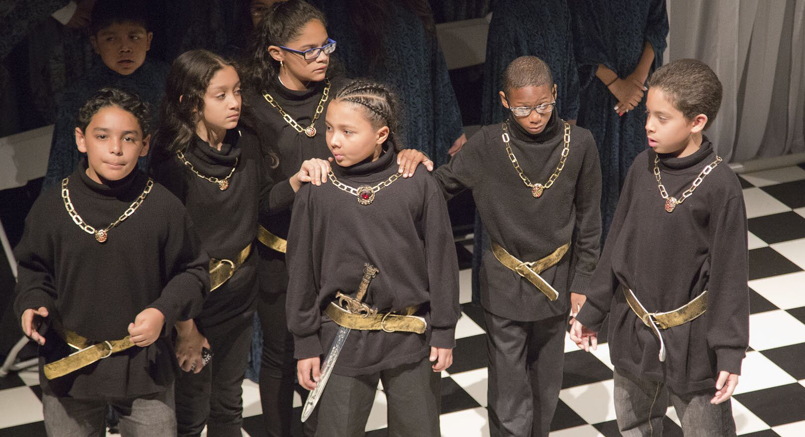 Now in its ninth year, the Ensemble is an extraordinary collaboration between The Shakespeare Society and the Hunts Point Alliance for Children in the South Bronx. Fourth, fifth and sixth graders from PS 48, MS 424, the Hyde Leadership Charter School, Bronx Charter School for the Arts and St. Ignatius School in Hunts Point spend an entire school year exploring, researching, and performing one play.